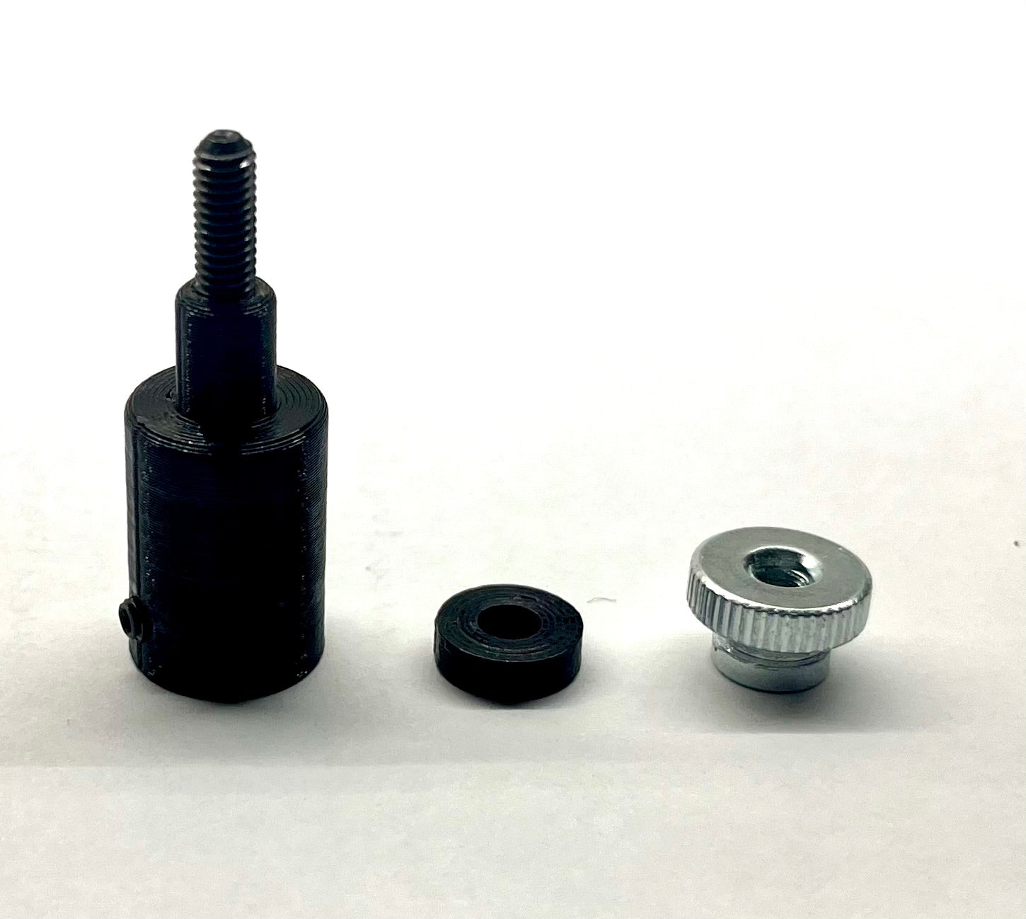 Front tire sidewall gluing is critical in 12th scale racing, for both foam and rubber tires. This arbor mounts to the oh-so common Much-More style 10th scale tire sander and allows you to spin up your 12th scale tires to touch up/reduce the sidewall glue diameter with a file. Also useful to completely remove the sidewall glue when conditions dictate. While the tire sander spins tires much too fast and eccentrically to glue the sidewalls reliably check out our line of TGCs (Tire Glue Carousels) to nail down your sidewall glue game.